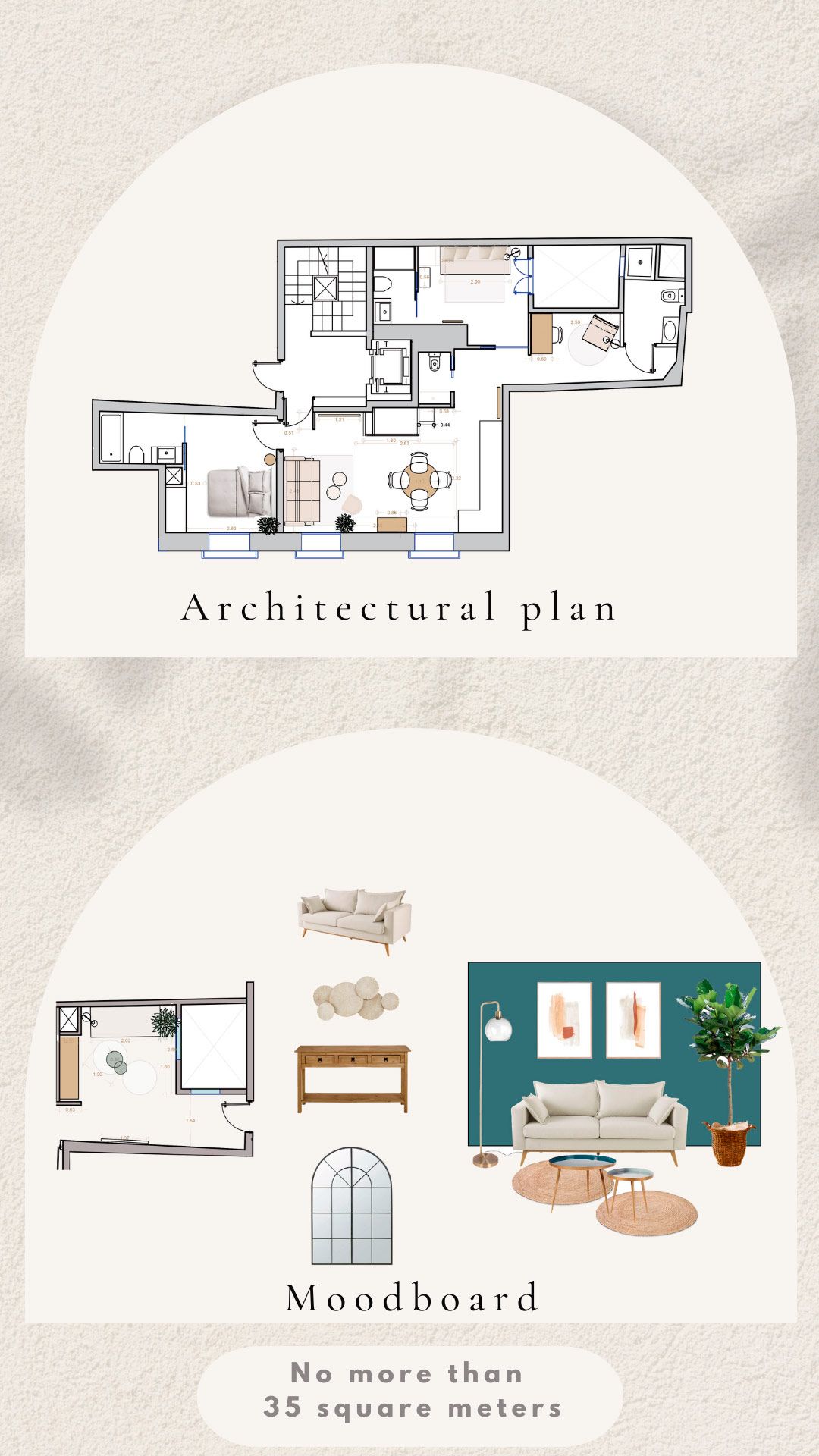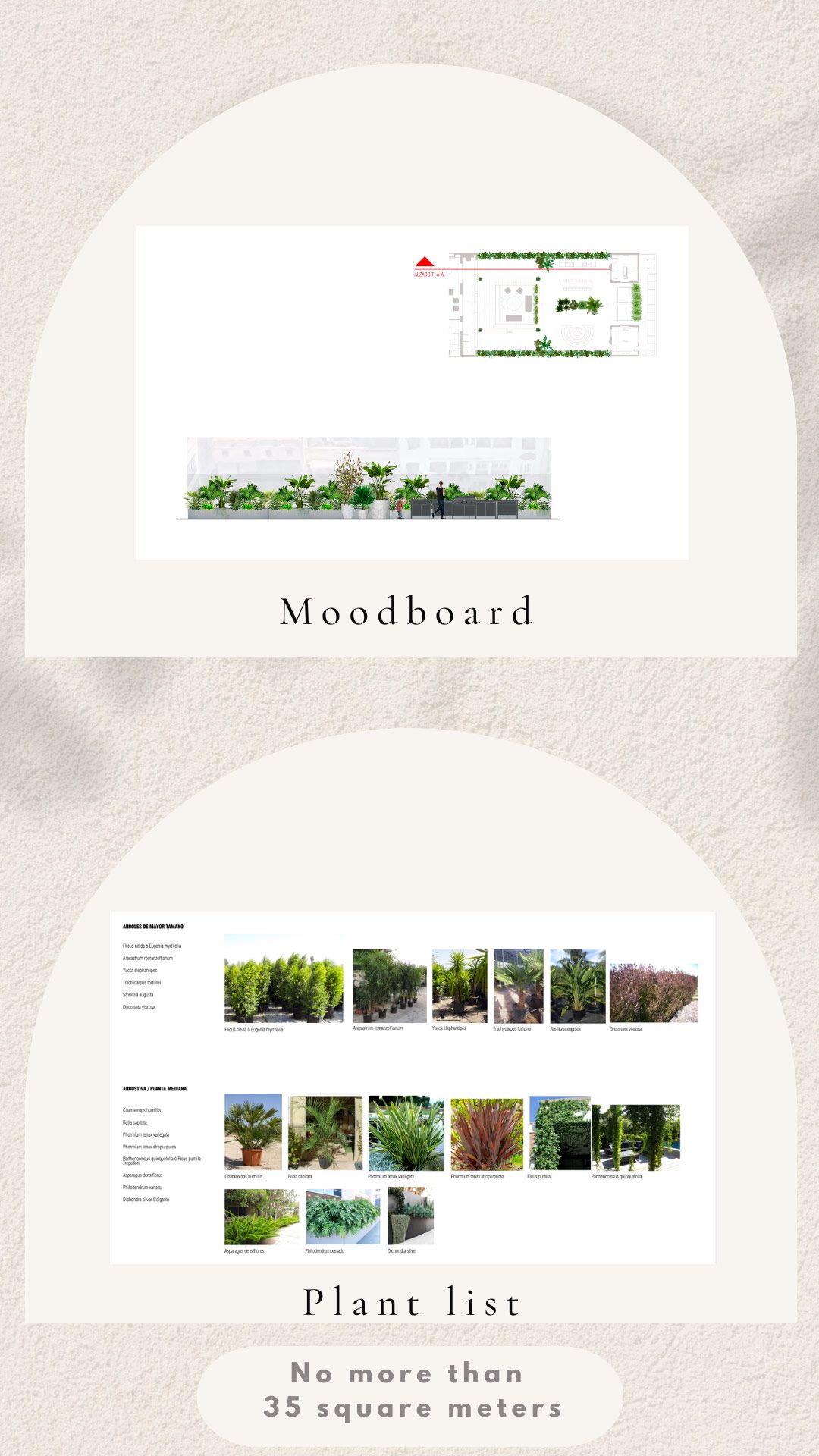 • Moodboard: Una presentación visual con la selección de decoración, mobiliario, plantas y materiales que te ayudará a visualizar cómo quedará tu espacio.